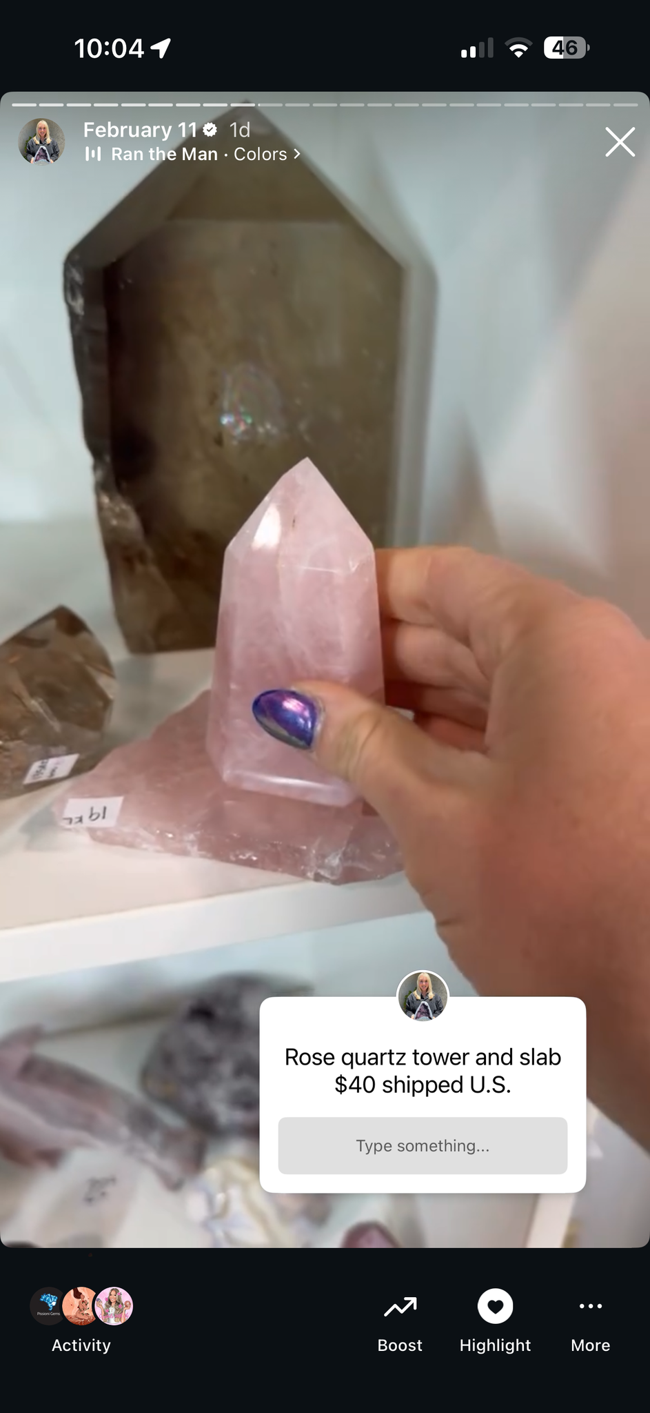 $40 rose quartz tower and slab