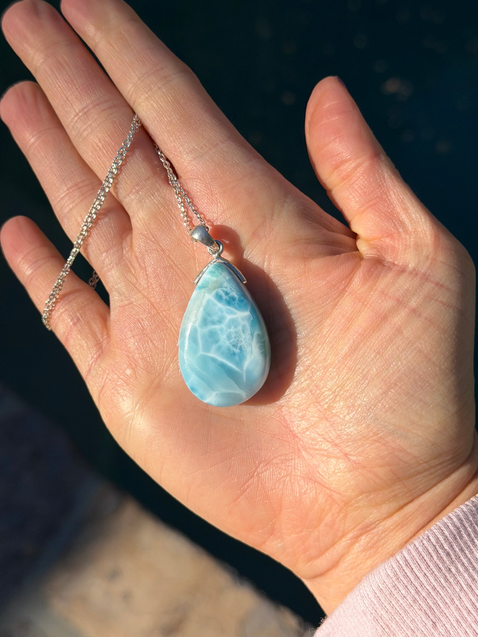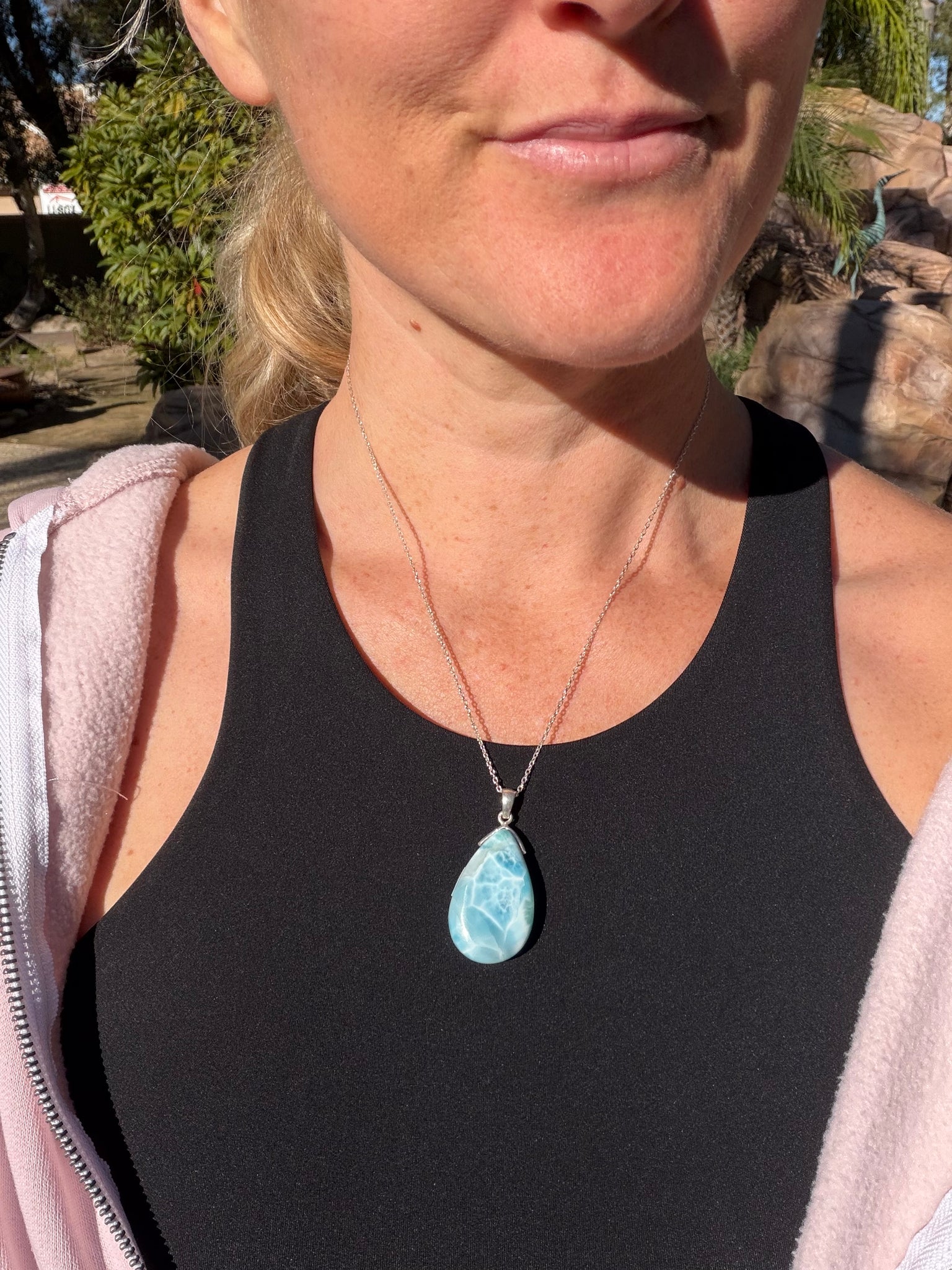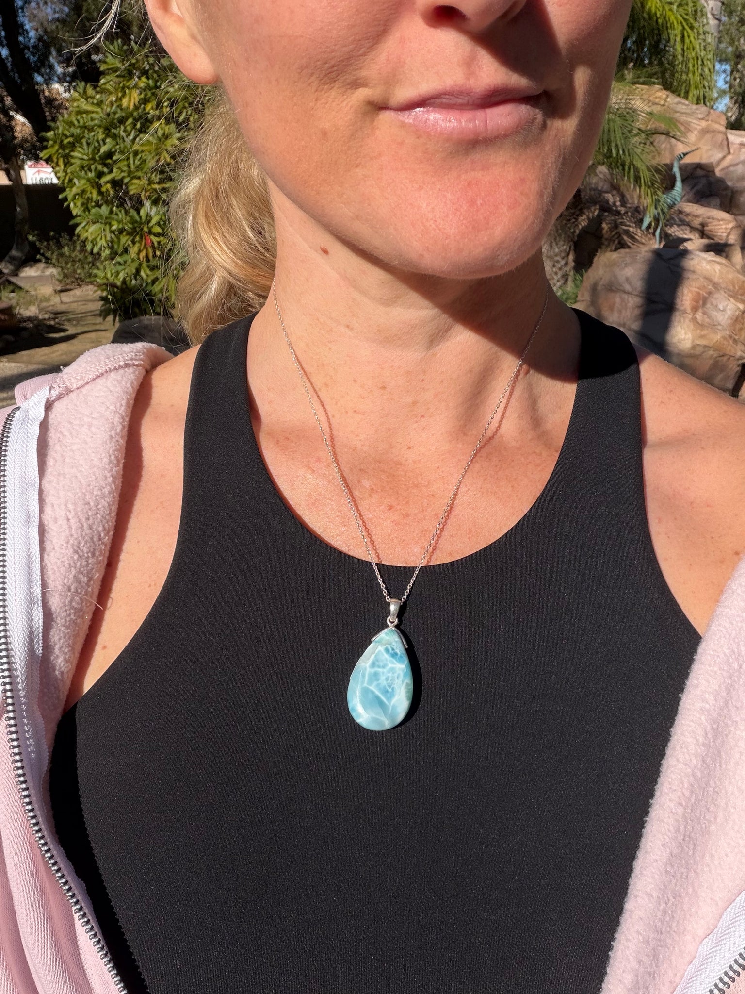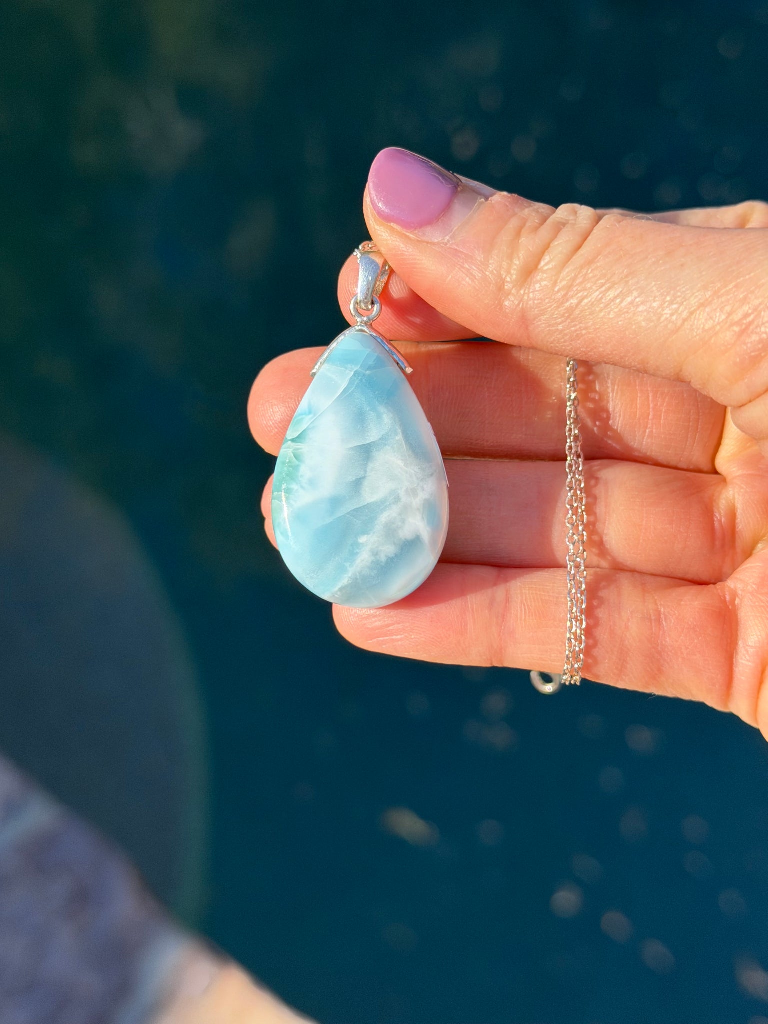 Larimar Rounded Teardrop Sterling Silver Pendant