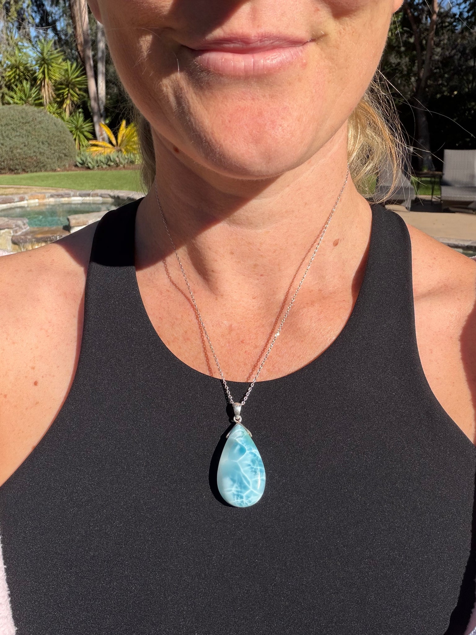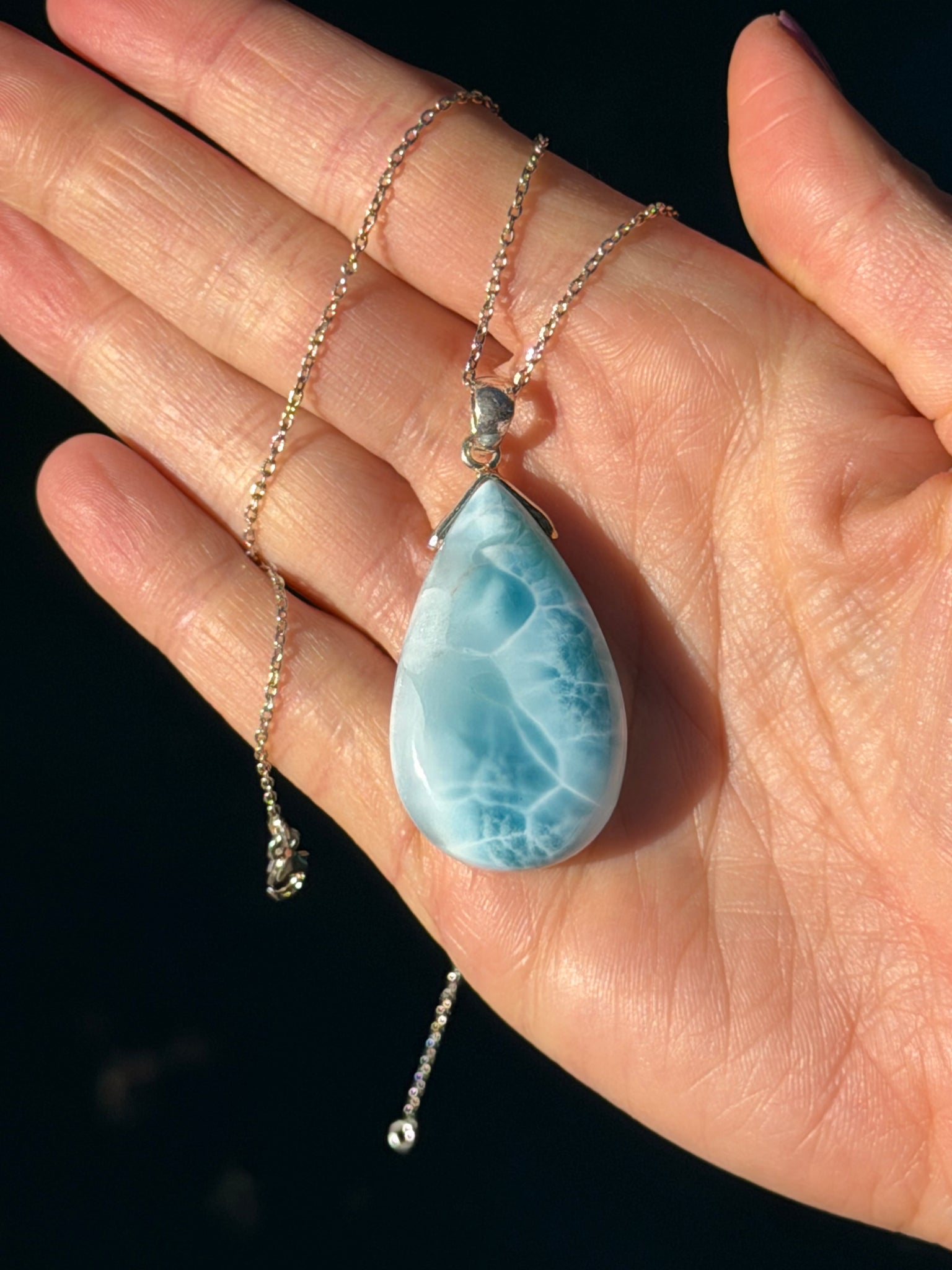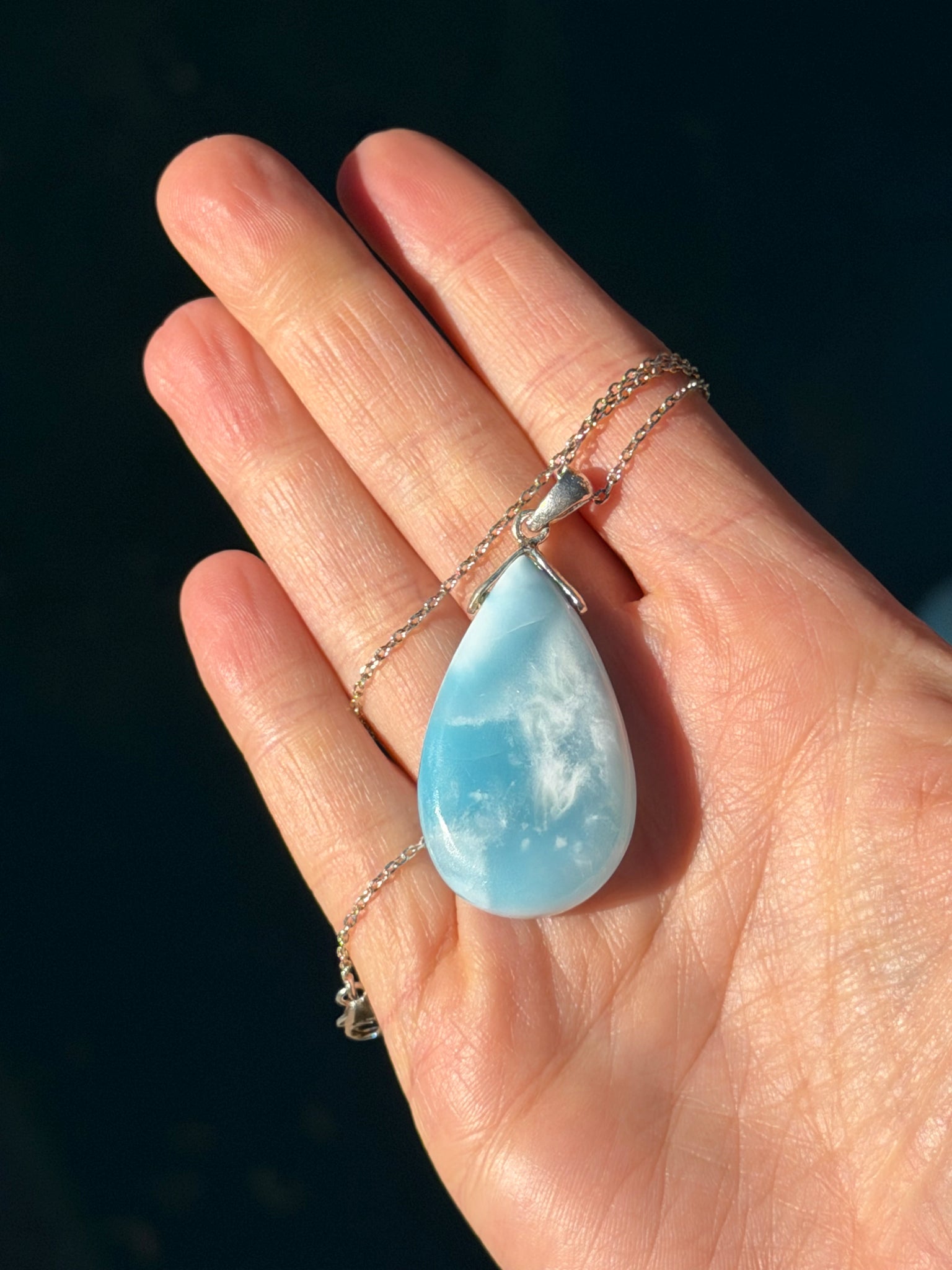 Larimar Rounded Teardrop Sterling Silver Pendant