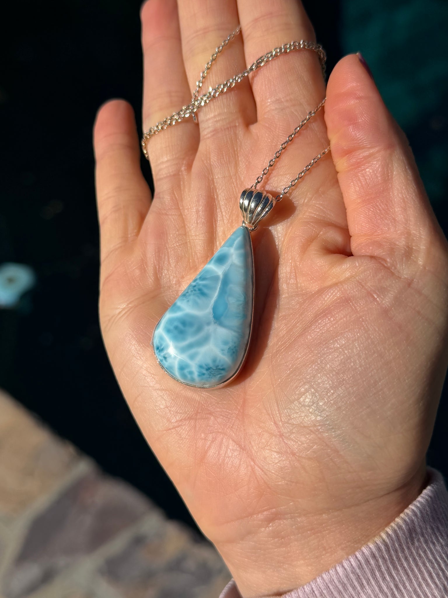 Larimar Teardrop Swirl Sterling Silver Pendant