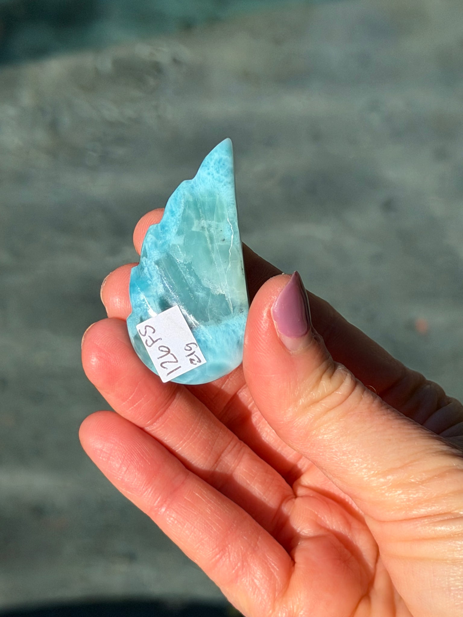 21 grams larimar 3D wing carving. Dominican Republic