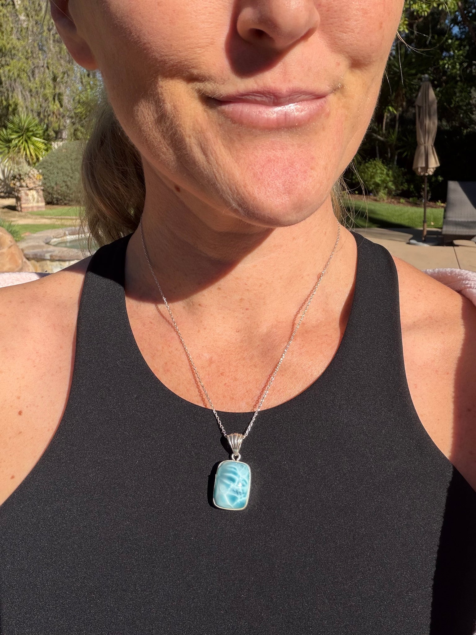Larimar Rectangle Sterling Silver Pendant 72pn